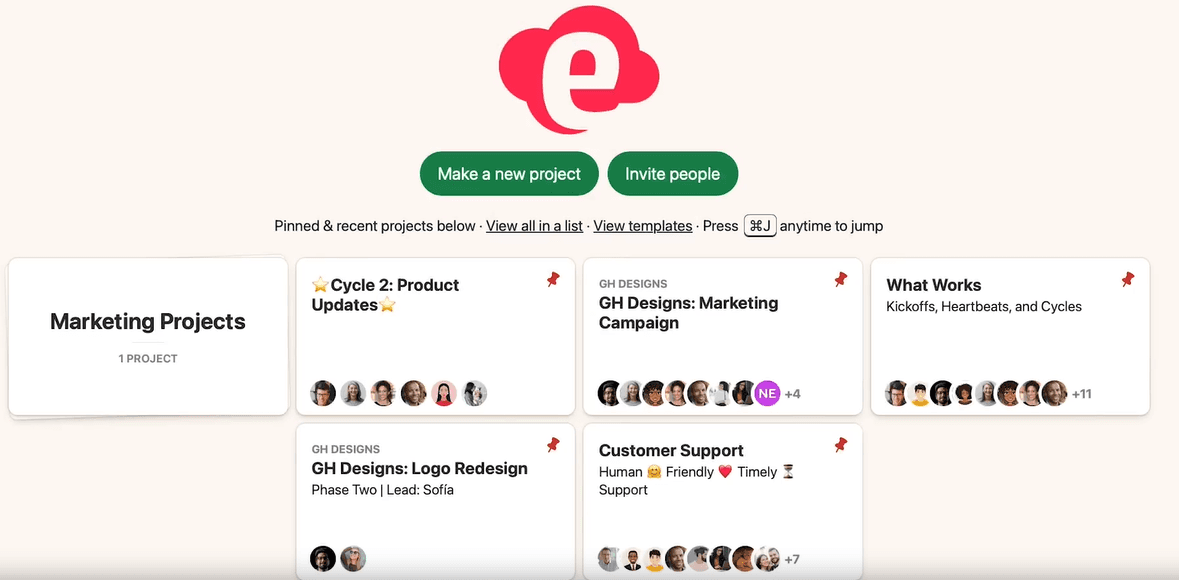 Basecamp tiene un enfoque diferente al de Trello. Está pensado para simplificar la colaboración en equipos pequeños: tareas, calendario, archivos y chats todo en un solo lugar.