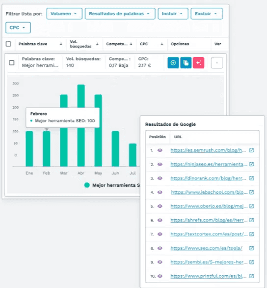 Me permite gestionar el SEO de mis proyectos sin necesidad de recurrir a varias herramientas, lo que me supone un ahorro tanto de tiempo como de dinero. Puedo hacer el seguimiento de KW para controlar si hay bajadas preocupantes, espiar a la competencia, hacer KW research, mejorar mis contenidos… ¡Todo desde un mismo lugar!
